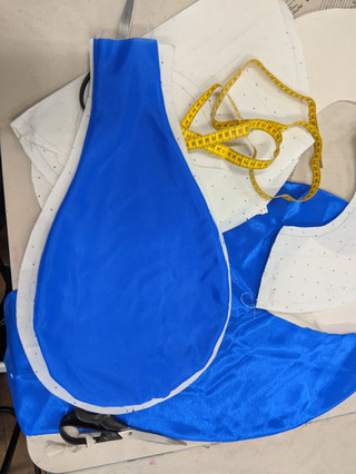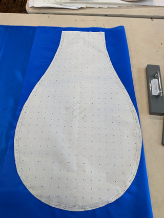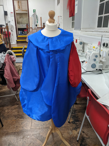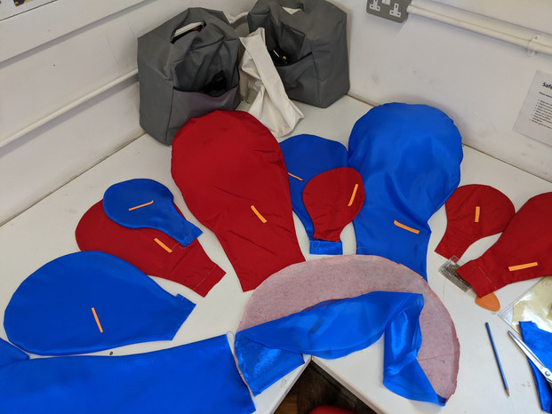 Materials were on me and my own pathetic attempts at making a sustainable piece went down the pooper pretty fast. My collection was inspired by Jeff Koons' baloon statues and therefore I was looking for glossy fabric, of which in silk I found only one in the colour and texture that would have been suitable and that was £50/ meter. I knew about Offset Warehouse - awesome sustainable fabric shop, but I struggle choosing fabric in real life, so biuying it online is out of question. Then I went down the rabbit hole and gave up on sustainability by almost choosing PVC, since the colour and the texture fitted the bill so perfectly. I decided to give up on that because I would not be able to sew that together either. So I bought offcuts, of which I used one of them and then I found glossy polyester that I would be able to sew together. The filling of my piece is lefover bubble wrap that I have plenty of at home. Some of my tutors said it is quite sustainable, but I do not see how. Essentially I'm wrapping leftover plastic into new plastic. The only truly sustainable items are my vintage buttons I bought for the piece.