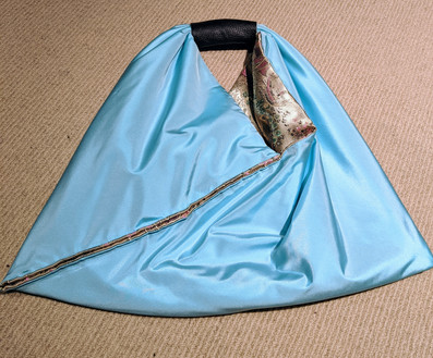The first mistake made was that I never created a pattern, because I assumed that a rectangle is totally fine to be cut out of the material straight away (it is not). Subsequently, I did not allow for seam allowance and did not create notches - marks that enable you to sew pieces together neatly (important when you sew 3 pieces together). All of these contributed to the bag being imbalanced in the end.